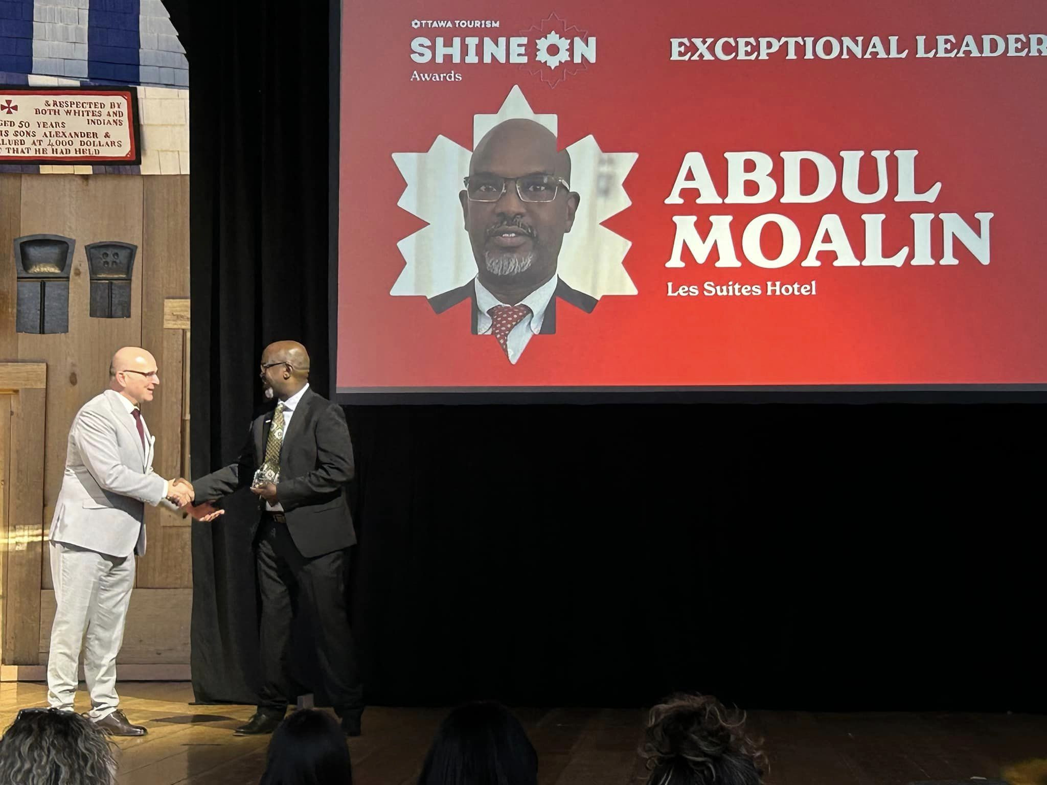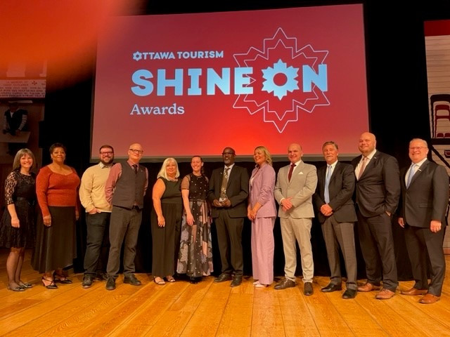Receiving an Exceptional Leader award from the Minister of Tourism of Canada Hon. Randy Boissonnault at ottawa Tourism Shine On.